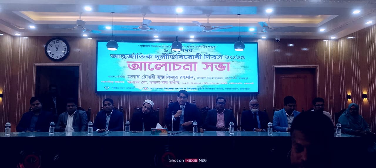 “দুর্নীতির বিরুদ্ধে তারুণ্যের একতা : গড়বে আগামীর শুদ্ধতা” এই প্রতিপাদ্যকে সামনে রেখে রাজবাড়ীর বালিয়াকান্দিতে আন্তর্জাতিক দুর্নীতি বিরোধী দিবস ২০২৫ উপলক্ষে মানববন্ধন ও আলোচনা সভা অনুষ্ঠিত হয়েছে।