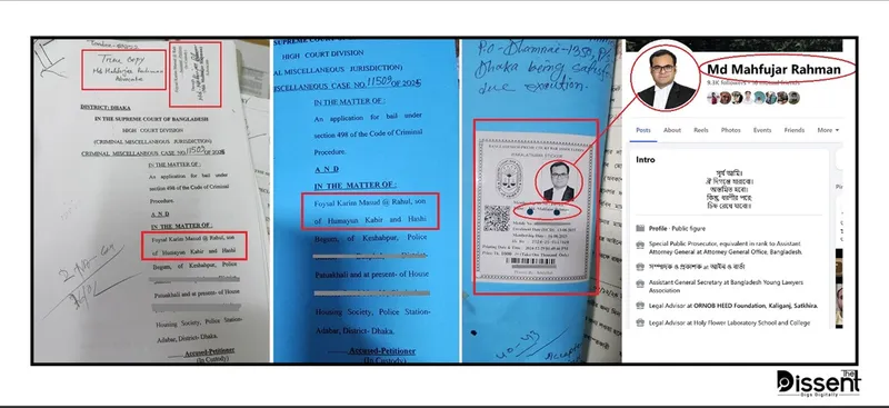দ্য ডিসেন্ট তাদের ফেসবুক পেজে জানায়, আদালতে দাখিল করা ফয়সাল করিম মাসুদের জামিন পিটিশন ও ওকালতনামা সংগ্রহ করে তা আইনজীবী মো. মাহফুজার রহমানের সামাজিক যোগাযোগমাধ্যমে থাকা ছবি ও তথ্যের সঙ্গে মিলিয়ে তারা নিশ্চিত হয়েছে যে, পিটিশন দাখিলকারী মাহফুজার রহমান তিনিই। সুপ্রিম কোর্ট বার অ্যাসোসিয়েশনের ওয়েবসাইটে থাকা মোবাইল নম্বর ও মেম্বারশিপ আইডির সঙ্গেও পিটিশনে উল্লেখিত তথ্যের হুবহু মিল পাওয়া গেছে।