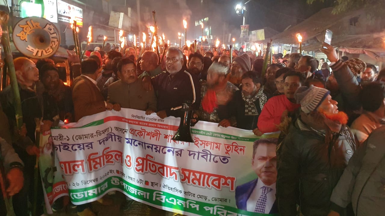 এছাড়া একই দিন বিকেলে ডোমারের গোমনাতি বাজারে সড়ক অবরোধ করে টায়ার জ্বালিয়ে বিক্ষোভ কর্মসূচি পালন করেন ধানের শীষের কর্মী-সমর্থকরা।