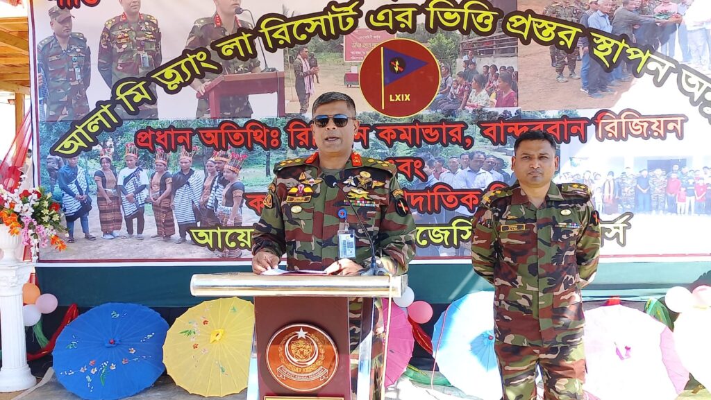 সুংসুয়াং পাড়ার নির্মাণাধীণ আলা মি ত্ল্যাং লা রিসোর্ট এর ভিত্তি প্রস্তর স্থাপন অনুষ্ঠানে প্রধান অতিথির বক্তব্য রাখতে গিয়ে সেনাবাহিনীর বান্দরবান রিজিয়ন কমান্ডার ব্রিগেডিয়ার জেনারেল এস এম রাকিব ইবনে রেজওয়ান, এএফডব্লিউসি, পিএসসি বলেন, দি ম্যাজিস্টিক টাইগার্স’ (১৬ ই বেংগল) এর সেনা সদস্যরা পরিকল্পনা প্রণয়ন থেকে শুরু করে দুর্গম এলাকায় রিসোর্ট নির্মাণের জন্য স্থানীয় জনসাধারণকে সকল ধরনের সহযোগিতা প্রদান করে চলেছেন। ২৪ পদাতিক ডিভিশনের অর্থায়নে এই প্রকল্পটি বাস্তবায়নে প্রায় ৩০ লক্ষ টাকা ব্যয় করা হচ্ছে।