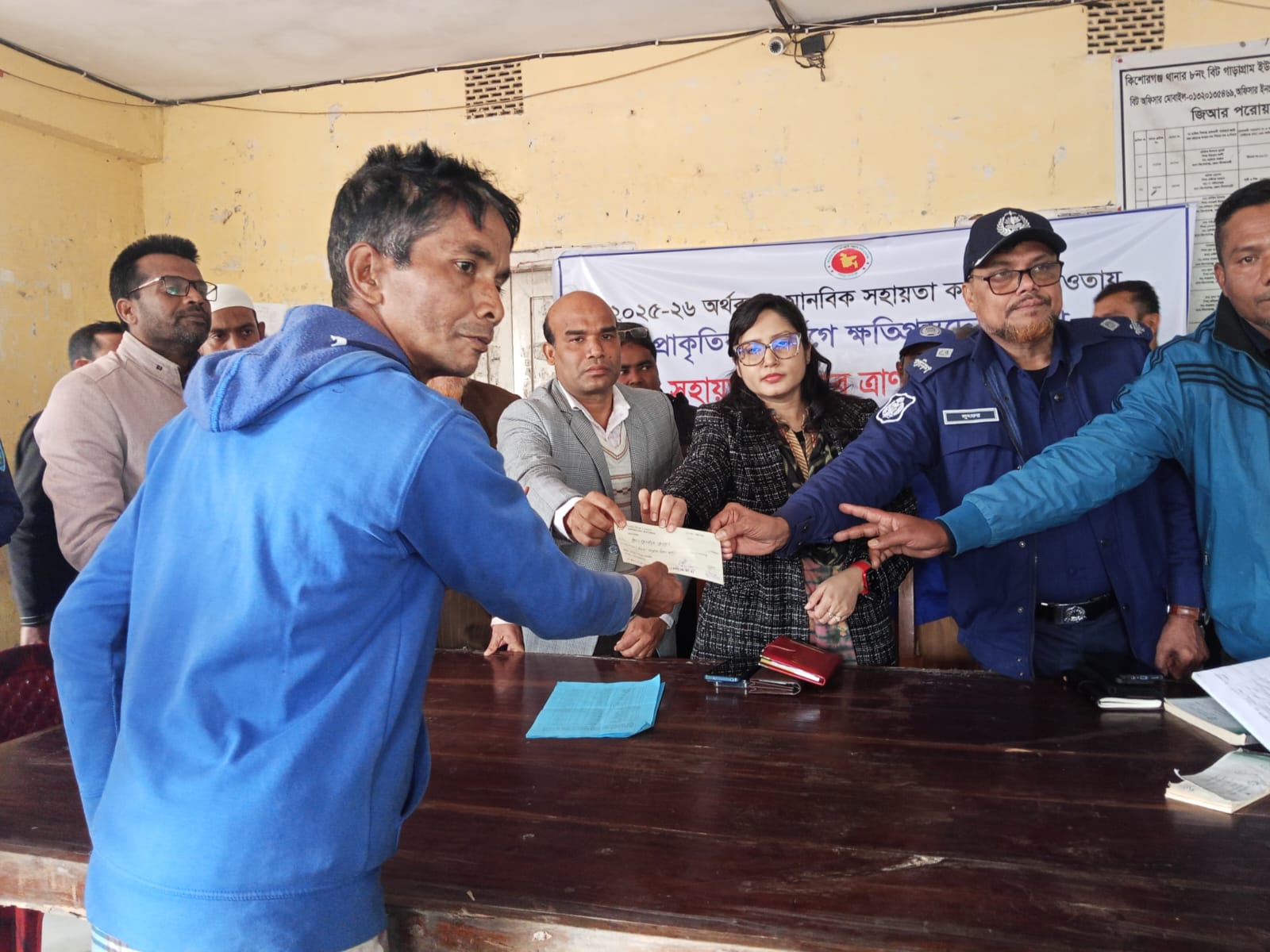 চেক বিতরণ অনুষ্ঠানে প্রধান অতিথি হিসেবে উপস্থিত থেকে ক্ষতিগ্রস্তদের মাঝে চেক বিতরণ করেন কিশোরগঞ্জ উপজেলা নির্বাহী কর্মকর্তা (ইউএনও) তানজিমা আঞ্জুম সোহানিয়া।