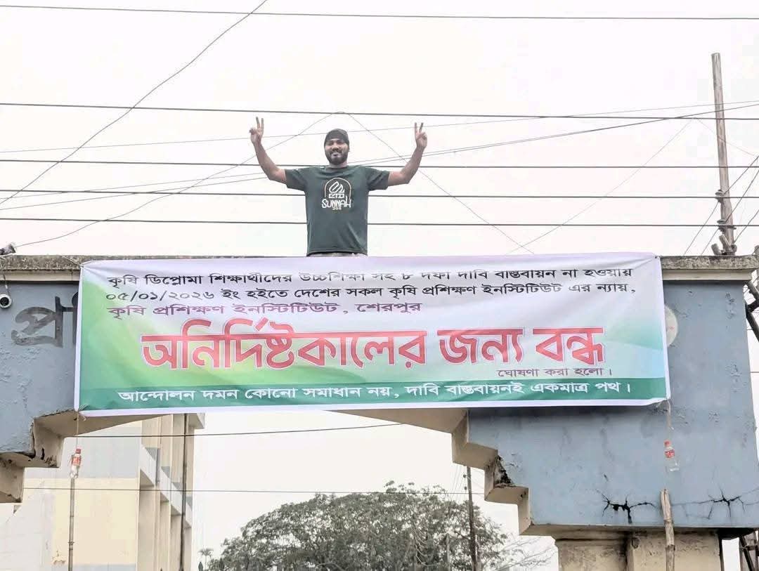 সারা দেশের অন্যান্য কৃষি প্রশিক্ষণ ইনস্টিটিউটের শিক্ষার্থীদের সঙ্গে সংহতি প্রকাশ করে শেরপুর কৃষি প্রশিক্ষণ ইনস্টিটিউটের শিক্ষার্থীরা তাদের ঘোষিত ৮ দফা দাবি আদায়ের লক্ষ্যে অনির্দিষ্টকালের জন্য শিক্ষা কার্যক্রম বন্ধ ঘোষণা করেছেন।