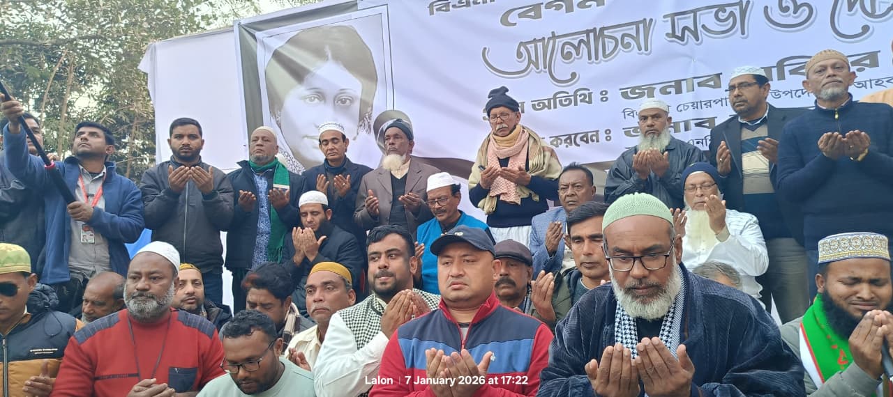 বক্তার আরো বলেন, মানবতার মা, আপোসহীন নেত্রী, বেগম খালেদা জিয়া দেশের গণতন্ত্র, স্বাধীনতা ও মানুষের ভোটাধিকার প্রতিষ্ঠায় আজীবন সংগ্রাম করে গেছেন। তাঁর আদর্শ ও রাজনৈতিক সংগ্রাম আগামী প্রজন্মের জন্য অনুপ্রেরণা হয়ে থাকবে। বেগম খালেদা জিয়া বাংলাদেশের প্রথম নারী প্রধানমন্ত্রী হিসেবে নির্বাচিত হয়েছিলেন। তার বর্ণাঢ্য জীবনে কখনো অন্যায়ের সাথে আপোষ করেননি। আগামী একশ বছরের মধ্যেও খালেদা জিয়ার মতো এমন নেতা এদেশে পাওয়া মুশকিল হবে। জাতীর এ ক্ষতি পূরণ হবার নয়।