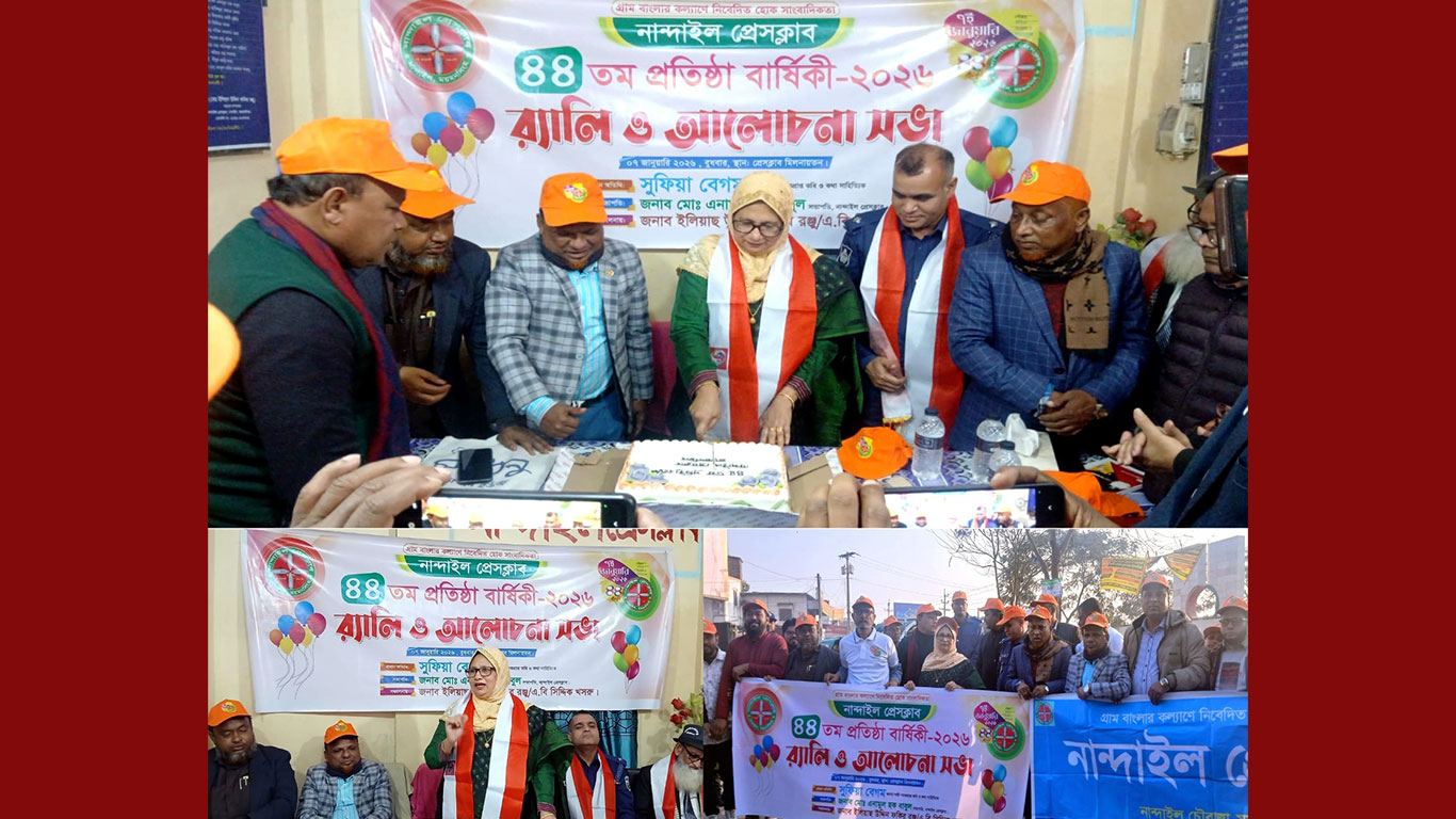 ময়মনসিংহের নান্দাইলে বিপুল উৎসাহ-উদ্দীপনা ও আনন্দঘন পরিবেশে “নান্দাইল প্রেসক্লাব” এর ৪৪ তম প্রতিষ্ঠা বার্ষিকী পালিত হয়েছে।