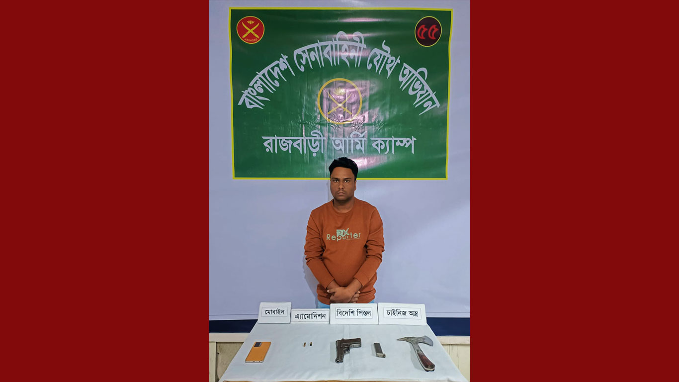 শুক্রবার সকালে রাজবাড়ীর আর্মি ক্যাম্প এক প্রেস বিজ্ঞপ্তিতে জানায়, গোপন সংবাদের ভিত্তিতে রাজবাড়ীর আর্মি ক্যাম্পের কমান্ডারের নেতৃত্বে অভিযানটি পরিচালনা করা হয়। এ সময় সাগর শেখের বাড়ি থেকে একটি বিদেশী পিস্তল (ইউএসএ-৭.৬২), একটি তাজা গুলি, একটি গুলির খোসা, একটি ম্যাগাজিন, একটি চাইনিজ কুড়াল, একটি সুজুকি মোটরসাইকেল, একটি মোবাইল ফোন জব্দ করা হয়। পরে তাকে রাজবাড়ী থানায় হস্তান্তর করে সেনাবাহিনীর সদস্যরা।