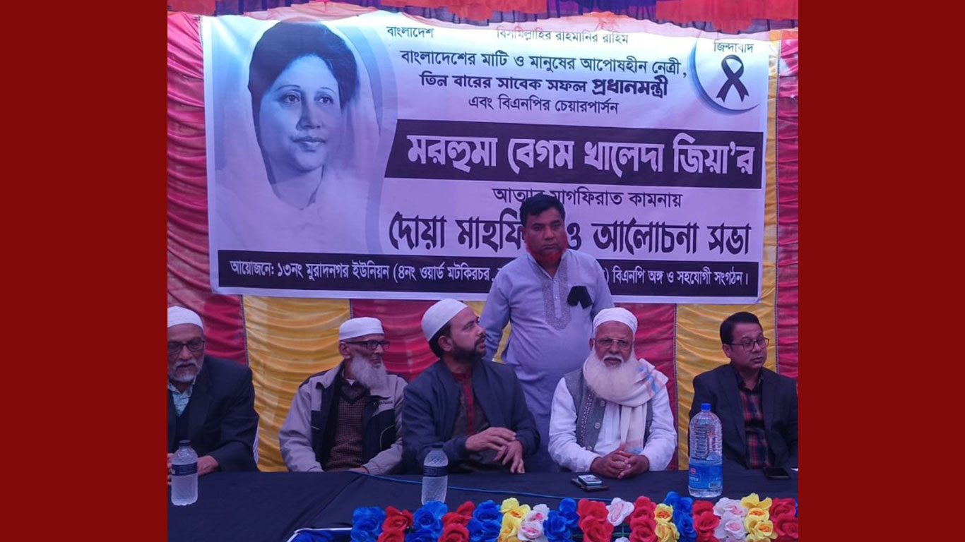 সাবেক প্রধানমন্ত্রী ও বিএনপির চেয়ারপারসন বেগম খালেদা জিয়ার মাগফিরাত কামনায় মুরাদনগর উপজেলার ১৩ নং সদর ইউনিয়নের ৪ নং ওয়ার্ড রামপুর, পূর্ব সোনাউল্লাহ মটকিরচরে দোয়া মাহফিল ও আলোচনা সভা অনুষ্ঠিত হয়েছে। এ উপলক্ষে শত শত মানুষের মাঝে খাবার বিতরণ করা হয়।