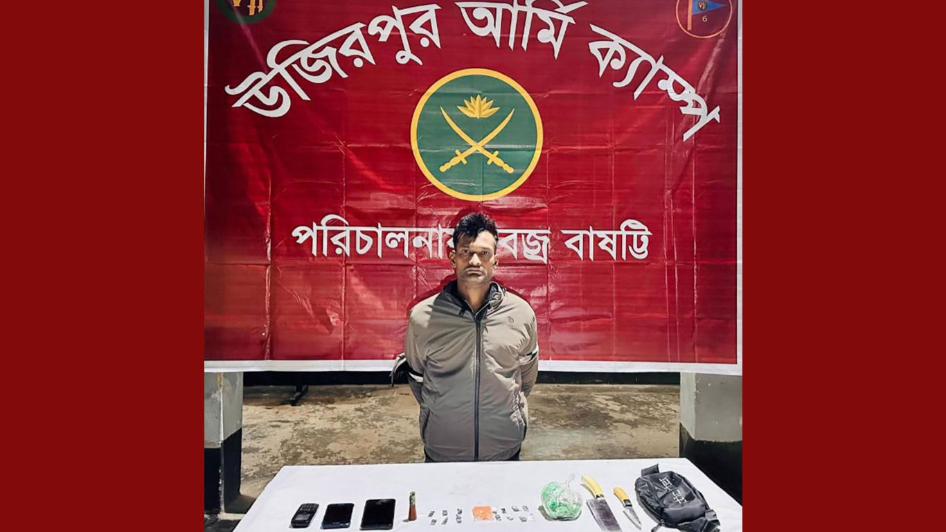 বরিশালের উজিরপুর উপজেলায় চাঁদাবাজি ও মাদক ব্যবসার বিরুদ্ধে বাংলাদেশ সেনাবাহিনী মধ্যরাতে বিশেষ অভিযান চালিয়ে এক চিহ্নিত সম্রাট শীর্ষ অপরাধীকে আটক করেছে। অভিযানে বিপুল পরিমাণ ইয়াবা ট্যাবলেট, গাঁজা ও দেশীয় অস্ত্র উদ্ধার করা হয়েছে।