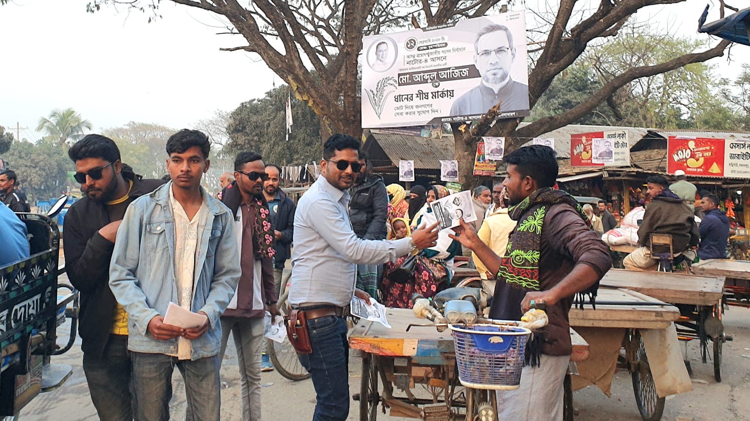 আগামী ত্রয়োদশ জাতীয় সংসদ নির্বাচনে বাংলাদেশ জাতীয়তাবাদী দল (বিএনপি) ৬১, নাটোর-৪ (গুরুদাসপুর-বড়াইগ্রাম) আসনে এমপি পদে ধানের শীষ প্রতিকের মনোনীত প্রার্থী জনাব আলহাজ্ব মোঃ আব্দুল আজিজ সাহেবের নির্বাচনী প্রচারণা উপলক্ষে আজ (২৫ জানুয়ারি) রোজ রবিবার বিকেল ৪ ঘটিকায় ৪নং মশিন্দা ইউনিয়নের হাট-বাজার সহ গুরুত্বপূর্ণ স্থানে গণসংযোগ ও লিফলেট বিতরণ করেন সোজাউদ্দৌলা সুজন, স্বেচ্ছায় অব্যাহতিপ্রাপ্ত গুরুদাসপুর উপজেলা ছাত্রদলের আহ্বায়ক ও যুবদল নেতা।