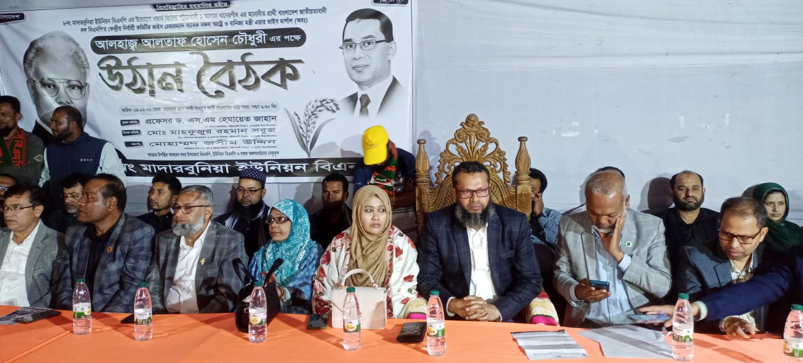 তিনি আলতাফ হোসেন চৌধুরীকে ধানের শীষে ভোট দিয়ে অবহেলিত মাদারবুনিয়া ইউনিয়নসহ পটুয়াখালীর সার্বিক উন্নয়নের দায়িত্ব প্রদানের আহ্বান জানান।এ সময় অন্যান্যের মধ্যে বিশেষ অতিথি হিসেবে উপস্থিত ছিলেন নিউট্রিশন এন্ড ফুড সায়েন্স অনুষদের ডিন প্রফেসর মো:শহিদুল ইসলাম,সয়েল সায়েন্স বিভাগের প্রফেসর ড. মো: সাইফুল ইসলাম, স্ট্যাটিসটিক্স বিভাগের প্রফেসর মো: মেহেদী হাসান সিকদার, প্রধান খামার তও্বাবধায়ক(ভারপ্রাপ্ত) আরিফুর রহমান,ডেপুটি রেজিস্ট্রার ড. রাহাত মাহমুদ, মো: শাহজালাল,পটুয়াখালী জেলা আইনজীবি সমিতির সাবেক সাধারণ সম্পাদক ও বিএনপি নেতা এড. আবুল কালাম আজাদ, মতিয়ার রহমান, পবিপ্রবি’র সহকারী রেজিস্ট্রার লোকমান হোসেন মিঠু, মাহমুদ আল জামান,মেহেদী হাসান প্রমুখ।