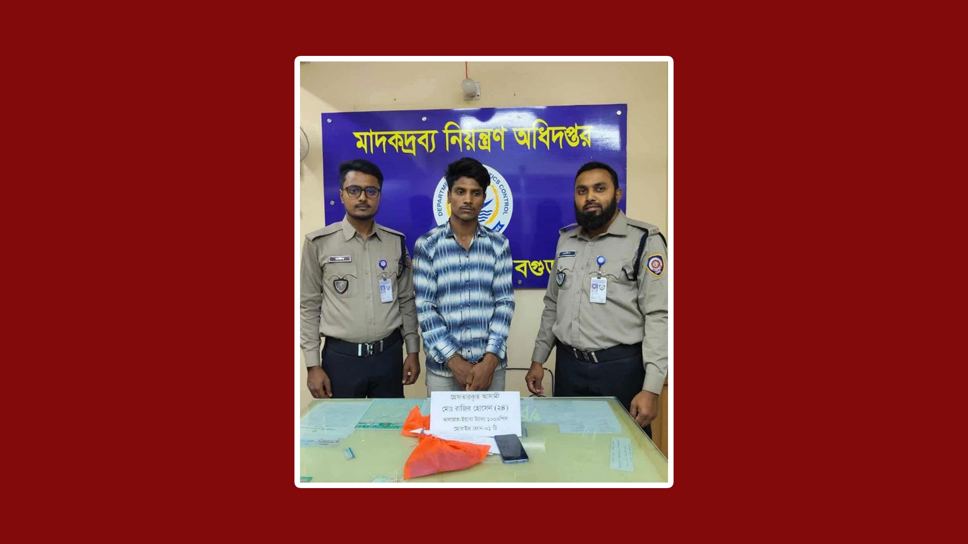 বগুড়ার শাহাজানপুর উপজেলার নয়মাইল জামালপুর এলাকায় ঢাকা -টু- রংপুর মহাসড়কের পশ্চিম পার্শ্বে জনৈক মোঃ ইউসুফের বাড়ীর সামনে পাকা রাস্তার উপর শালকী সুপার পরিবহন নামীয় যাত্রীবাহী কোচ যার রেজিস্ট্রিশন নং- ঢাকা মেট্রো-ব-১২-৪৬৭৯ বাসের G-1 সিটে বসা (টিকিট বিহীন) যাত্রী মোঃ রাজিব হোসেন (২৪) এর দেহ তল্লাশী করে ১ হাজার পিস ইয়াবা ট্যাবলেটসহ মাদক ব্যবসায়ী রাজিব হোসেনকে (২৪) গ্রেফতার করা হয়েছে।