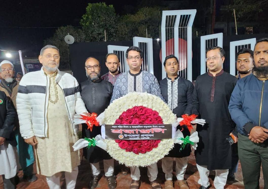 প্রথমে উপজেলা নির্বাহী কর্মকর্তা এম এ মোহাইমিন আল জিহান শহিদ মিনারে পুষ্পস্তবক অর্পণ করেন। পরে উপজেলা প্রশাসন, পুলিশ প্রশাসন, বিচার বিভাগ, বিভিন্ন রাজনৈতিক ব্যক্তিবর্গ, বীর মুক্তিযোদ্ধা, সরকারি ও বেসরকারি দপ্তর, শিক্ষা প্রতিষ্ঠানসহ নানা সামাজিক ও সাংস্কৃতিক সংগঠনের প্রতিনিধিরা একে একে শ্রদ্ধা জানান।