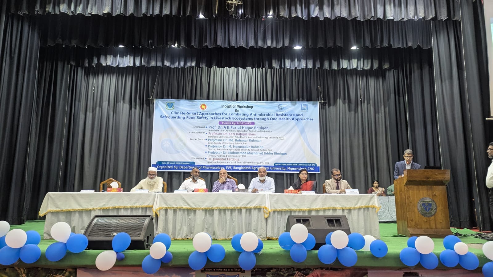 বাংলাদেশ কৃষি বিশ্ববিদ্যালয়ে (বাকৃবি) “ওয়ান হেলথ দৃষ্টিভঙ্গিতে জলবায়ু-স্মার্ট পদ্ধতির মাধ্যমে অ্যান্টিমাইক্রোবিয়াল রেজিস্ট্যান্স মোকাবিলা এবং পশুপালন খাতে খাদ্য নিরাপত্তা সুরক্ষা” শীর্ষক একটি কর্মশালা আয়োজিত হয়েছে। হায়ার এডুকেশন এক্সিলারেশন অ্যান্ড ট্রান্সফরমেশন (হিট) – একাডেমিক ট্রান্সফরমেশন ফান্ড (এটিএফ) প্রকল্পটিতে অর্থায়ন করেছে।