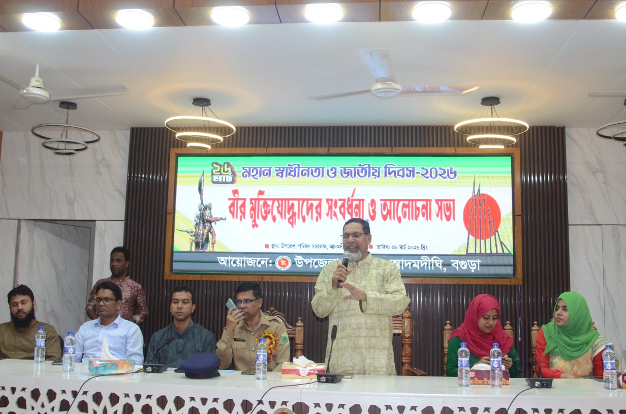 বগুড়ার আদমদীঘি উপজেলা প্রসাশনের উদ্যোগে মহান স্বাধীনতা দিবস যথাযথ ভাবে পালিত হয়েছে। এ উপলক্ষ্যে বৃহস্পতিবার (২৬ মার্চ) সূর্যোদয়ের সাথে আদমদীঘি উপজেলা প্রসাশন, মুক্তিযোদ্ধা সংসদ, রাজনৈতিক দল, প্রেসক্লাব, সামাজিক সংগঠনসহ বিভিন্ন শিক্ষা প্রতিষ্ঠান উপজেলা চত্বরে কেন্দ্রীয় শহীদ মিনারে পুস্পস্তবক অর্পন করেন।