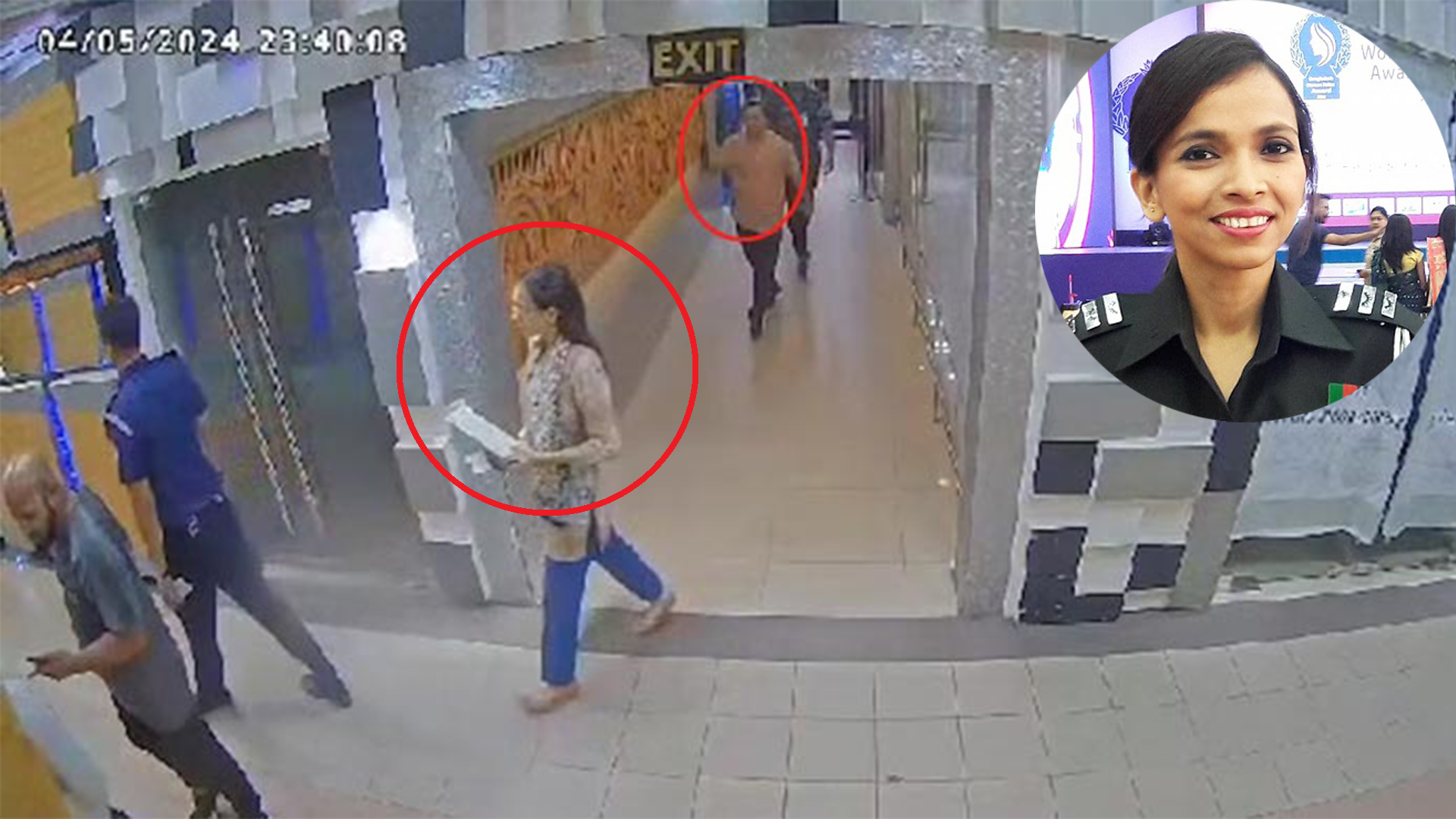 সিসিটিভি ফুটেজে দেখা যায়, বেনজীরের কাগজপত্রসহ পুলিশ কর্মকর্তা শাহেদা সুলতানা তার আগে আগে হাঁটে যাচ্ছেন।