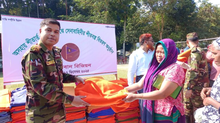 বান্দরবানে সেনাবাহিনীর উদ্যোগে অসহায় পরিবারের মাঝে শীতবস্ত্র বিতরণ