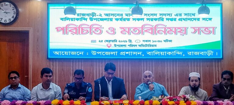 মোঃ আমিরুল হক, রাজবাড়ী প্রতিনিধি: রাজবাড়ীর বালিয়াকান্দি উপজেলা পরিষদের সকল দপ্তরের দপ্তর প্রধানদের সাথে পরিচিতি ও মতবিনিময় সভা করেছেন জাতীয় সংসদের ২১০ ও রাজবাড়ী ২ (পাংশা-কালুখালী-বালিয়াকান্দি) আসনের নবনির্বাচিত সংসদ সদস্য