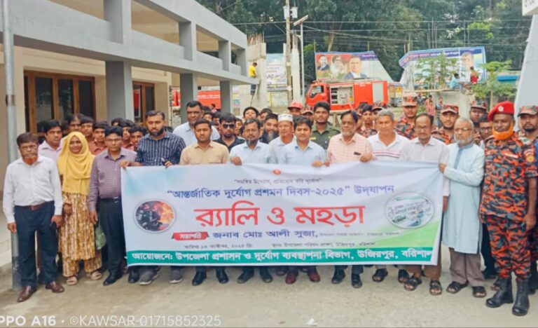 মাহফুজুর রহমান মাসুম, উজিরপুর (বরিশাল) প্রতিনিধিঃ ‘সমন্বিত উদ্যোগ, প্রতিরোধ করি দুর্যোগ’ প্রতিপাদ্যকে সামনে রেখে বরিশালের উজিরপুরে আন্তর্জাতিক দুর্যোগ প্রশমন দিবস-২০২৫ পালিত হয়েছে। সোমবার (১৩ অক্টোবর) সকাল ১১:৩০ মিনিটে উপজেলা পরিষদ
