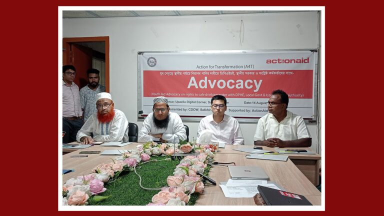 শরিফুল ইসলাম, সাতক্ষীরা প্রতিনিধি: সাতক্ষীরায় স্থানীয় পর্যায়ে নিরাপদ পানির দাবীতে ডিপিএইচই, স্থানীয় সরকার ও সংশ্লিষ্ট কর্তৃপক্ষের সাথে এডভোকেসি সভা অনুষ্ঠিত হয়েছে। বৃহস্পতিবার (১৪ আগষ্ট) সকাল ১০ টায় বেসরকারী উন্নয়ন সংস্থা