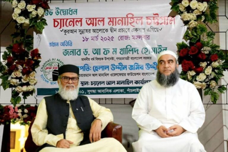 আসগর সালেহী, চট্টগ্রাম প্রতিনিধিঃ “কোরআন ও সুন্নাহর আলোকে দীন প্রচারে একধাপ এগিয়ে”—এই প্রতিপাদ্যকে ধারণ করে চ্যানেল আল-মানাহিলের যাত্রা শুরু হয়েছে। আধুনিক প্রযুক্তির সহায়তায় ইসলামের শাশ্বত বাণী বিশ্বব্যাপী পৌঁছে দিতে আল-মানাহিল
