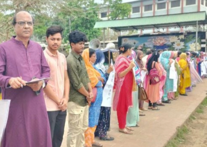 ধর্ষণ ও সহিংসতা প্রতিবাদে মহিলা পরিষদের উদ্যোগে কিশোরগঞ্জে মানববন্ধন