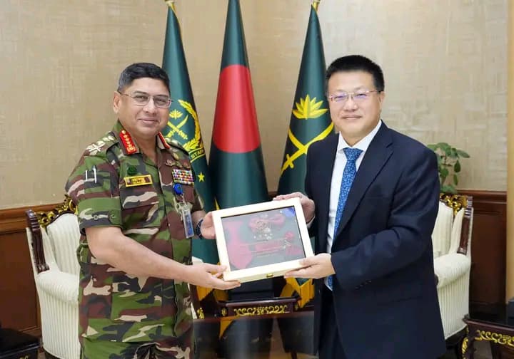 মোঃ সাজেল রানা, দৈনিক আমার বাংলাদেশ প্রতিনিধিঃ ঢাকা, ১৩ মার্চ ২০২৫ (বৃহস্পতিবার): চীনের মান্যবর রাষ্ট্রদূত Mr. Yao Wen এর নেতৃত্বে একটি প্রতিনিধি দল আজ সেনা সদরে সেনাপ্রধানের সাথে সৌজন্য সাক্ষাৎ