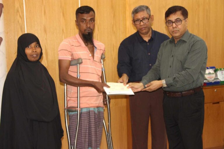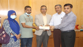 ক্যান্সারাক্রান্ত তৌহিদকে লাখ টাকার চেক দিলেন উপাচার্য ড. মো. জাহাঙ্গীর আলম