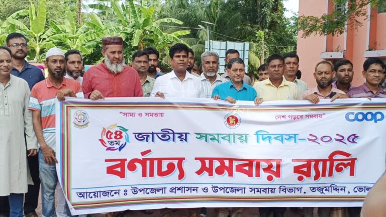 খন্দকার নিরব, ভোলা প্রতিনিধি: দেশের গ্রামীণ অর্থনীতিকে আরও শক্তিশালী ও আত্মনির্ভরশীল করে তোলার লক্ষ্যে, ‘সাম্য ও সমতায়, দেশ গড়বে সমবায়’ এই প্রতিপাদ্যকে ধারণ করে ভোলার তজুমদ্দিন উপজেলায় শনিবার (১ নভেম্বর)