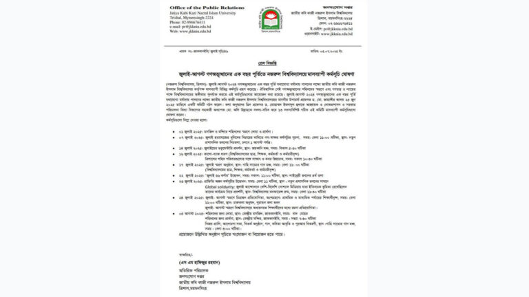 নজরুল বিশ্ববিদ্যালয়ে জুলাই-আগস্ট স্মরণ: এক বছর পূর্তিতে মাসব্যাপী কর্মসূচি