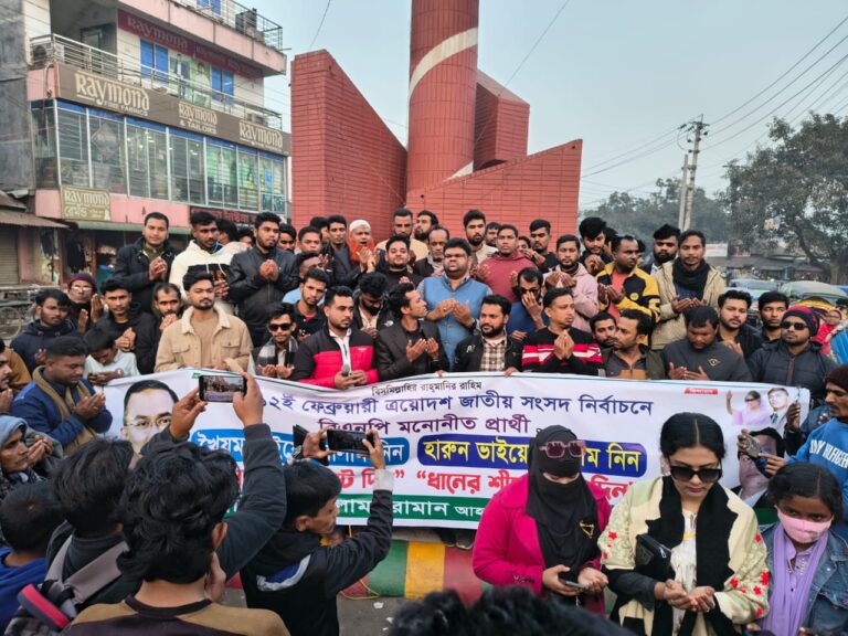 রাজবাড়ীর দু’টি আসনে ধানের শীষের প্রার্থীকে বিজয়ী করতে ছাত্রদলের মিছিল