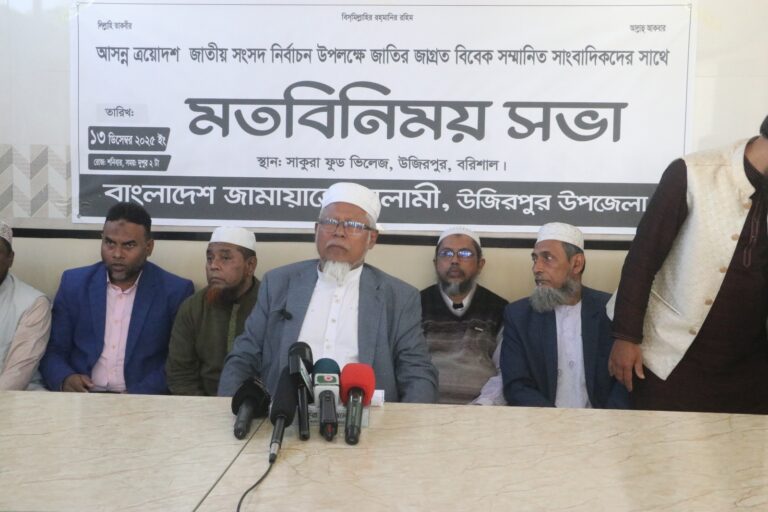 বরিশাল-২ আসনে জামায়াত প্রার্থীর সাংবাদিকদের সঙ্গে মতবিনিময় সভা অনুষ্ঠিত