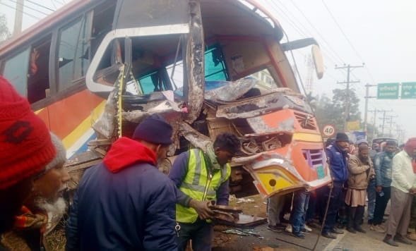বগুড়ায় বাস-ট্রাক মুখোমুখি সংঘর্ষ