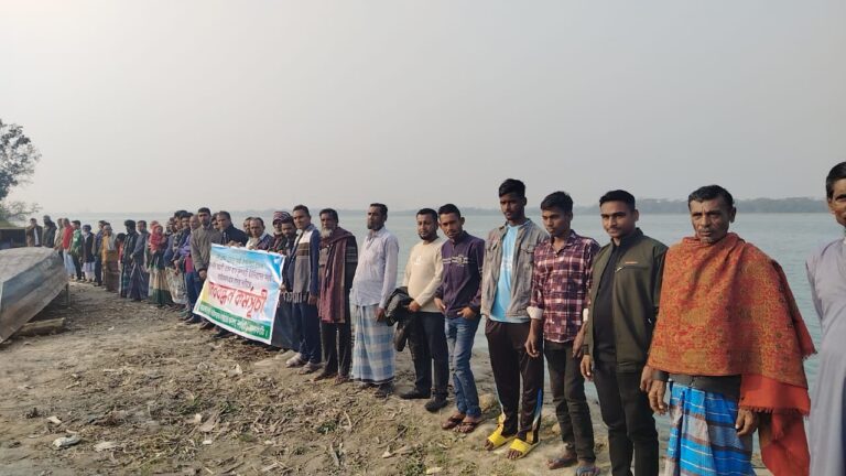 ঝালকাঠির নলছিটিতে সুগন্ধা নদী ভাঙন রোধে কার্যকরি উদ্যোগের দাবিতে মানববন্ধন