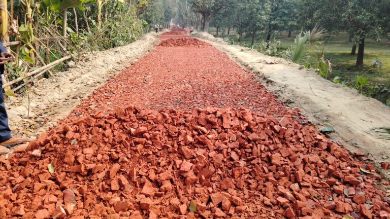 শিবগঞ্জে নিম্নমানের ইট দিয়ে রাস্তা নির্মাণের অভিযোগ