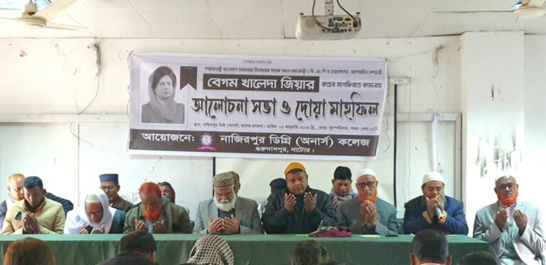 গুরুদাসপুরে বেগম খালেদা জিয়ার রুহের মাগফিরাত কামনায় আলোচনা সভা ও দোয়া মাহফিল অনুষ্ঠিত
