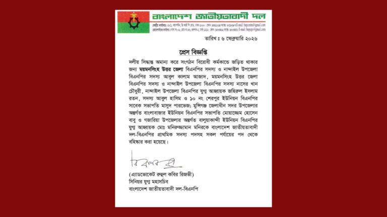 দলীয় শৃঙ্খলা ভঙ্গের কারণে নান্দাইল উপজেলা বিএনপির ৫ নেতাকে বহিষ্কার