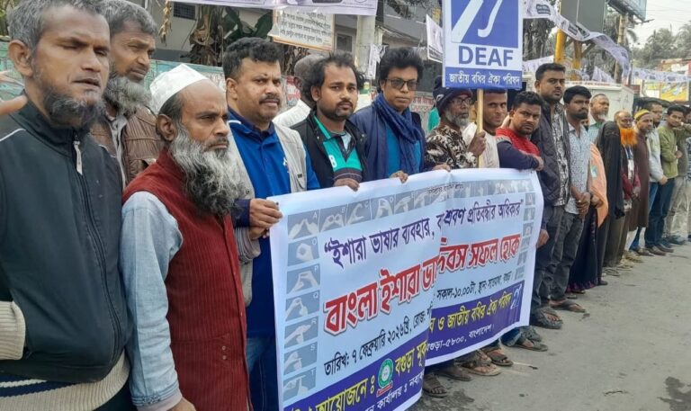 বাংলা ইশারা ভাষা দিবস উপলক্ষে বগুড়ায় র্যালি ও মানববন্ধন