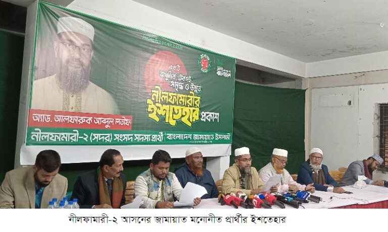 নীলফামারী-২ আসনে জামায়াত মনোনীত প্রার্থীর নির্বাচনী ইশতেহার ঘোষণা