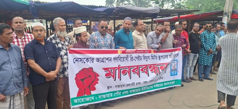 রাজবাড়ীতে কৃষিপণ্যে বিক্রয়ে ধলতা নেওয়া বন্ধসহ ৮ দফা দাবিতে বিক্ষোভ সমাবেশ
